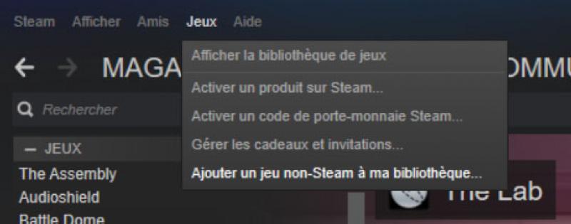 3ème étape : ajouter comme jeu "non Steam" l'exécutable TheLab.exe depuis votre répertoire Steam/steamapps/common/The Lab/TheLab/win64. Vous devriez à présent voir un raccourci vers TheLab dans votre bibliothèque.